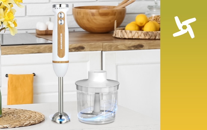 Accesoriile blenderului sunt ajutoarele tale pentru orice reteta: masoara cu paharul gradat (700 ml), bate albusurile si maioneza cu telul din inox si toaca restul ingredientelor in accesoriul dedicat. |