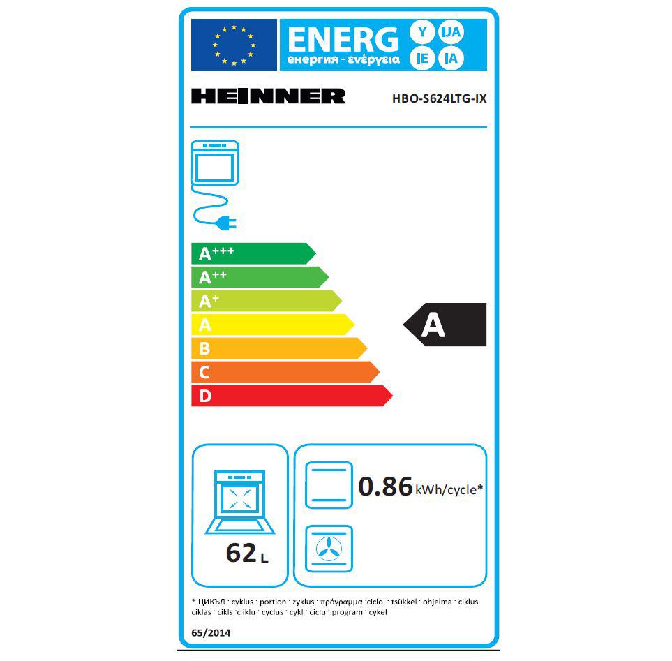 CUPTOR INCORPORABIL HEINNER HBO-S624LTG-IX, Clasa A, Electric, Capacitate 62L, 4 functii, Grill, Inox
