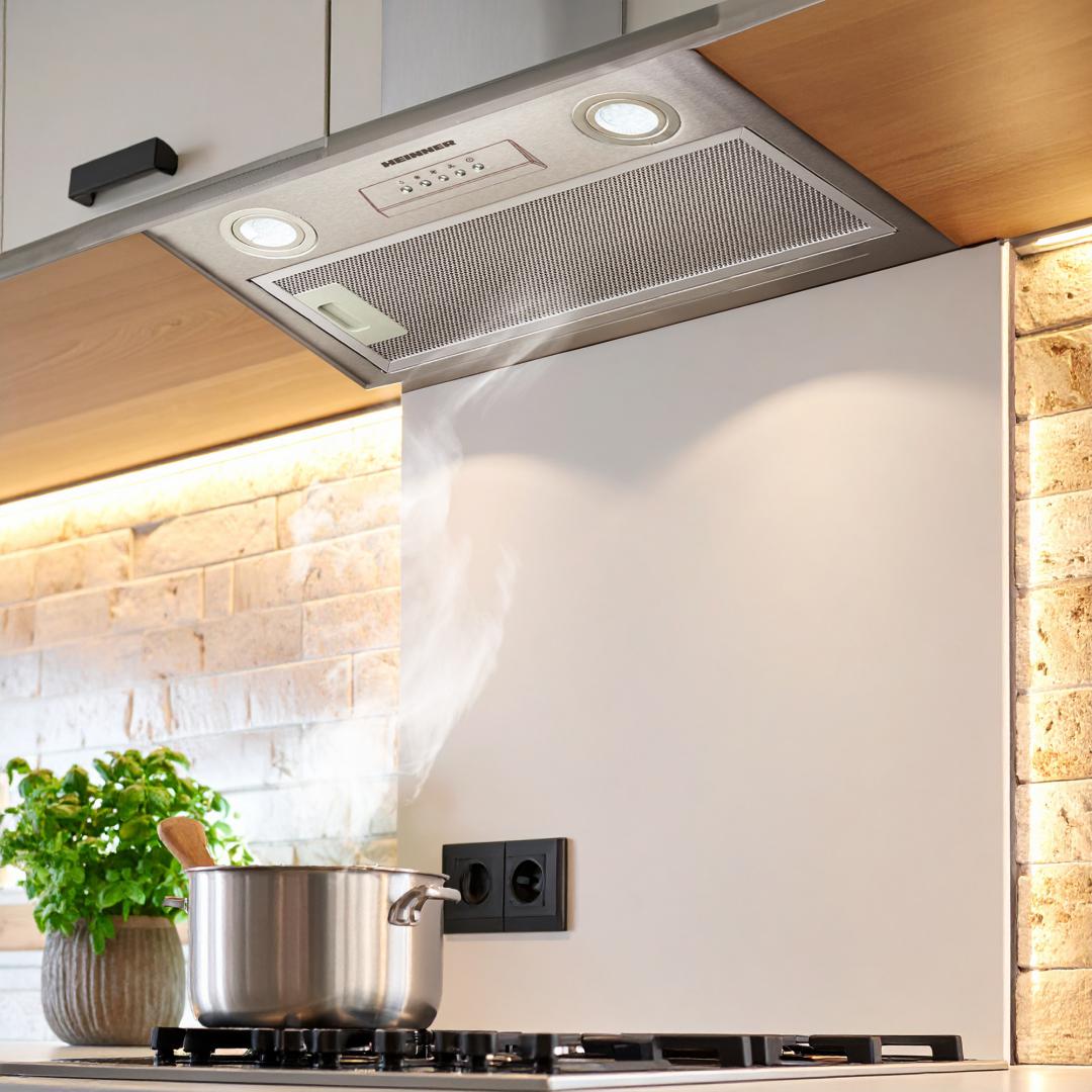 HOTA INCORPORABILA HEINNER HBIH-MD600IX, Capacitate absorbtie 610m3/h, 3 trepte de viteza, 1 motor, Lumina LED, 1 filtru aluminiu, Inox