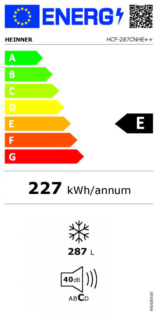 LADA FRIGORIFICA HEINNER HCF-287CNHE++, Clasa E, 287L, Compresor inverter, Control electronic, Iluminare LED, Convertibila, Alb