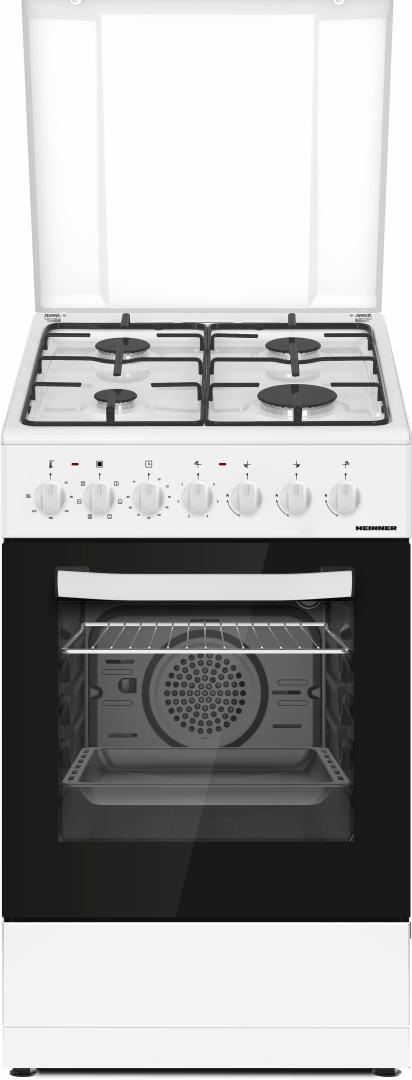 ARAGAZ MIXT HEINNER HFSC-S60LITGC-WH, 50x60cm, Clasa A, 4 arzatoare, Aprindere electrica plita, Cuptor electric, Timer, Grill, Ventilatie, Alb