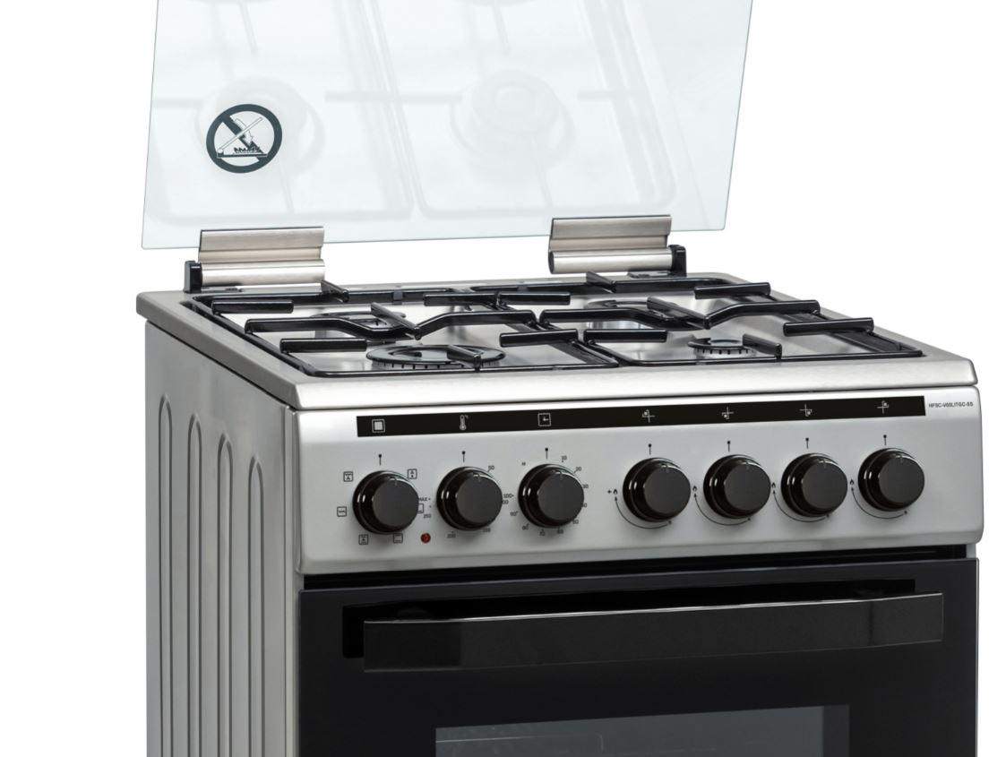 Aragaz Mixt Heinner HFSC-V60LITGC-SS, 50x60cm, 4 arzatoare, Suport email, Capac metalic, Aprindere electrica plita, Dispozitiv de siguranta plita, Cuptor electric, 6 functii, Timer, Grill, Ventilatie, Decongelare, Lumina cuptor, Usa cuptor cu geam dublu detasabil, Duze GPL incluse, Tava si gratar cromat, Dimensiuni ( LxAxI): 50x60x85 cm, Culoare: Inox