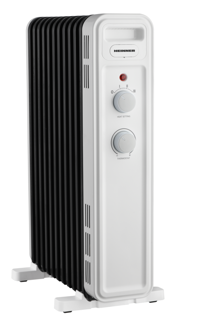 Calorifer cu ulei Heinner HOH-M13WH-BK, 13 elementi: 125×545 mm, 3 setari de temperatura: 1000W/1500W/2500W, Termostat ajustabil, Protectie supraincalzire, Protectie in caz de rasturnare, Roti, Spatiu depozitae cablu, Culoare: alb/negru