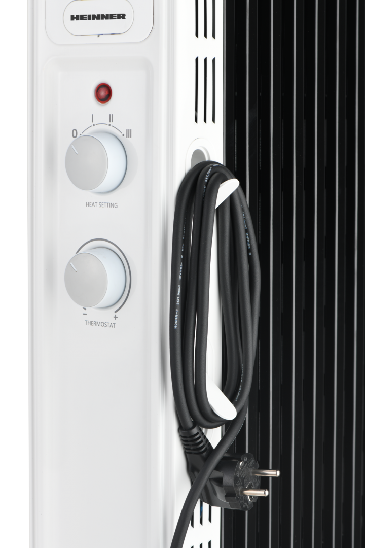 CALORIFER CU ULEI HEINNER HOH-M13WH-BK, 13 elementi, 1000W/1300W/2500W, Termostat adjustabil, Roti, Spatiu depozitare cablu, Alb/Negru