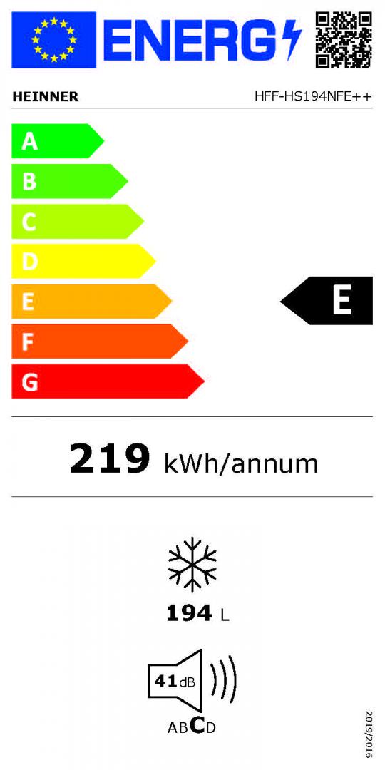 Congelator Heinner HFF-HS194NFE++, Full No Frost, clasa energetica: E, display LED, capacitate totala: 194L, functie Super congelare, alarma usa deschisa, 6 compartimente congelator, usa reversibila, capacitate de congelare: 9kg/24h, dimensiuni (WxDxH): 55.9 × 61.4 × 169.1 cm, culoare: Alb