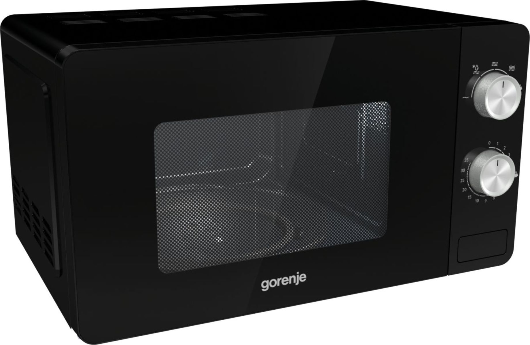 Cuptor cu microunde Gorenje MO20E1B, Capacitate 20 litri, Control mecanic, Putere cuptor 800 W, 5 trepte de putere, Timer, Functie decongelare, Semnal sonor la finalizarea programului, Diametru platou rotativ 27 mm, Nivel de zgomot: 60 dB(A), Dimensiuni (LxAxI): 45.1×34,3×25.7 cm, Culoare: negru