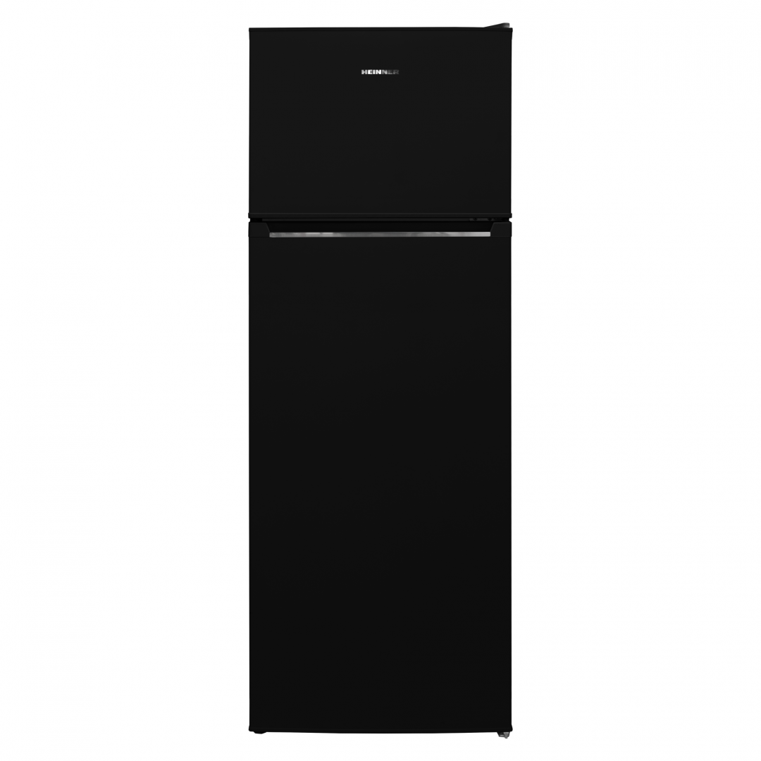 Frigider cu 2 usi Heinner HF-V212BKE++, clasa energetica: E, sistem de racire Less Frost, capacitate totala: 212L, capacitate frigider: 171L, capacitate congelator: 41L, control mecanic cu termostat reglabil, lumina LED, 3 rafturi din sticla, compartiment pentru fructe si legume, usi reversibile, suport de oua, tavita cuburi de gheata, capacitate congelare: 2.6kg/24h, dimensiuni (WxDxH): 54 x 57 x 145 cm, culoare: Negru