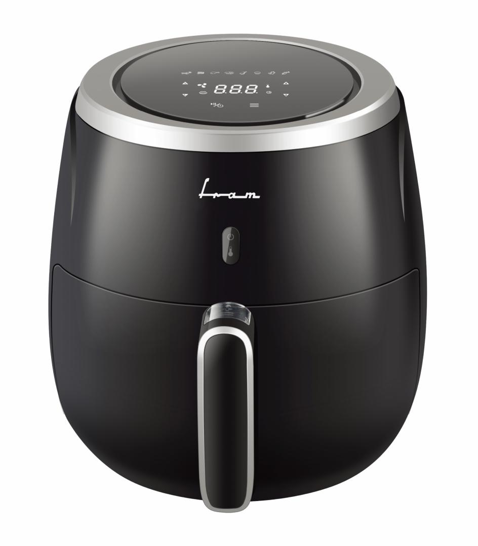 Friteuza cu aer cald Fram FAF-MD2000BK, capacitate cos: 5L, display digital, control Touch, vas detasabil anti-adeziv, temperatura ajustabila: 80-200˚C, temporizator: max 60min, protectie supraincalzire, putere: 2000W, culoare: negru