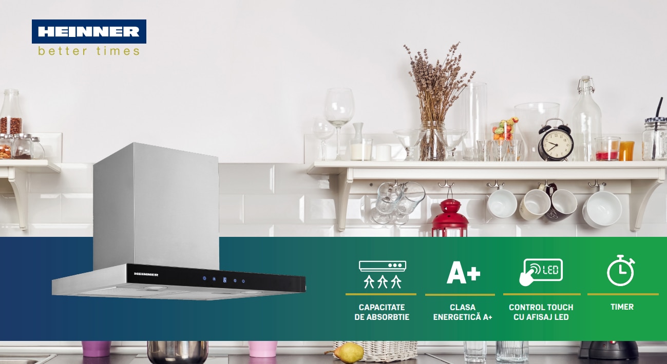 Gateste cu drag si spor pentru cei dragi, fara abur, fum sau mirosuri puternice in bucatarie. Hota decorativa Heinner, cu o capacitate mare de absorbtie, te ajuta sa improspatezi rapid aerul din bucatarie si sa te bucuri de un miros imbietor in casa. |