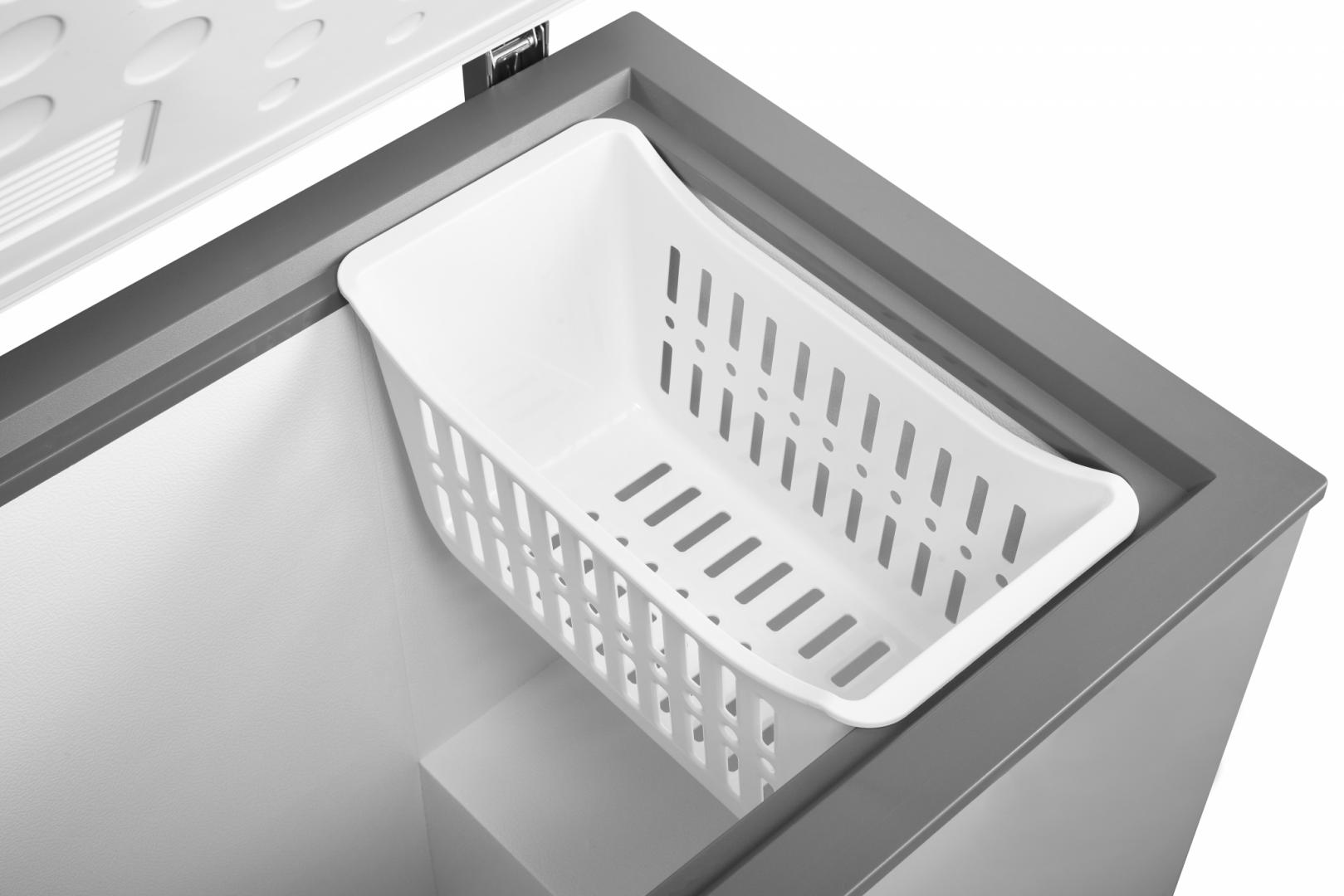 Lada frigorifica Heinner HCF-205NHSE++, clasa energetica: E, capacitate totala: 198L, control electronic, rezistenta la frig (opereaza la temperaturi scazute : -15°C), rezistenta la variatii de tensiune 175~255V Display, rezistent la apa, functie congelare rapida, 1 cos din plastic, decongelare manuala, role pentru transportare usoara, capacitate de congelare: 12kg/24h, dimensiuni (WxDxH): 90.5 x 54.5 x 84.5 cm, culoare: argintiu
