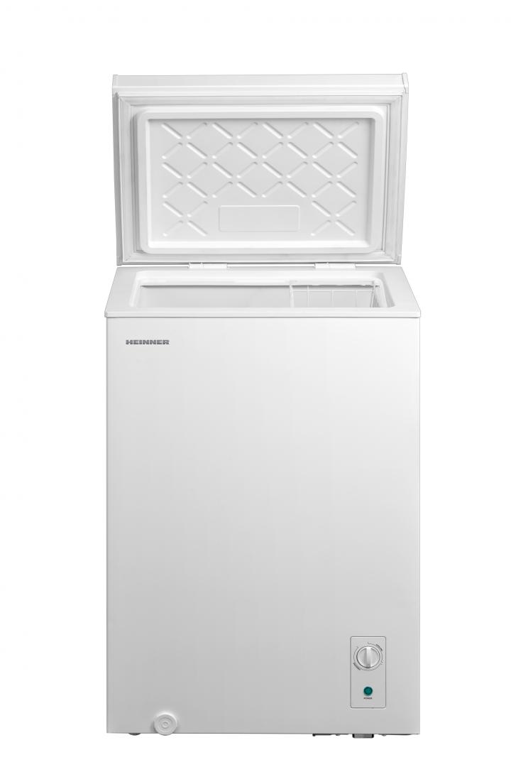 Lada frigorifica Heinner HCF-M99INVCE++, clasa energetica: E, compresor Inverter, functionare convertibila (Frigider/Congelator), capacitate totala: 99L, control mecanic, 1 cos, decongelare manuala, capacitate de congelare: 4.5kg/24h, dimensiuni (LxAxI): 54.7 x 44.6 x 85 cm, culoare: Alb