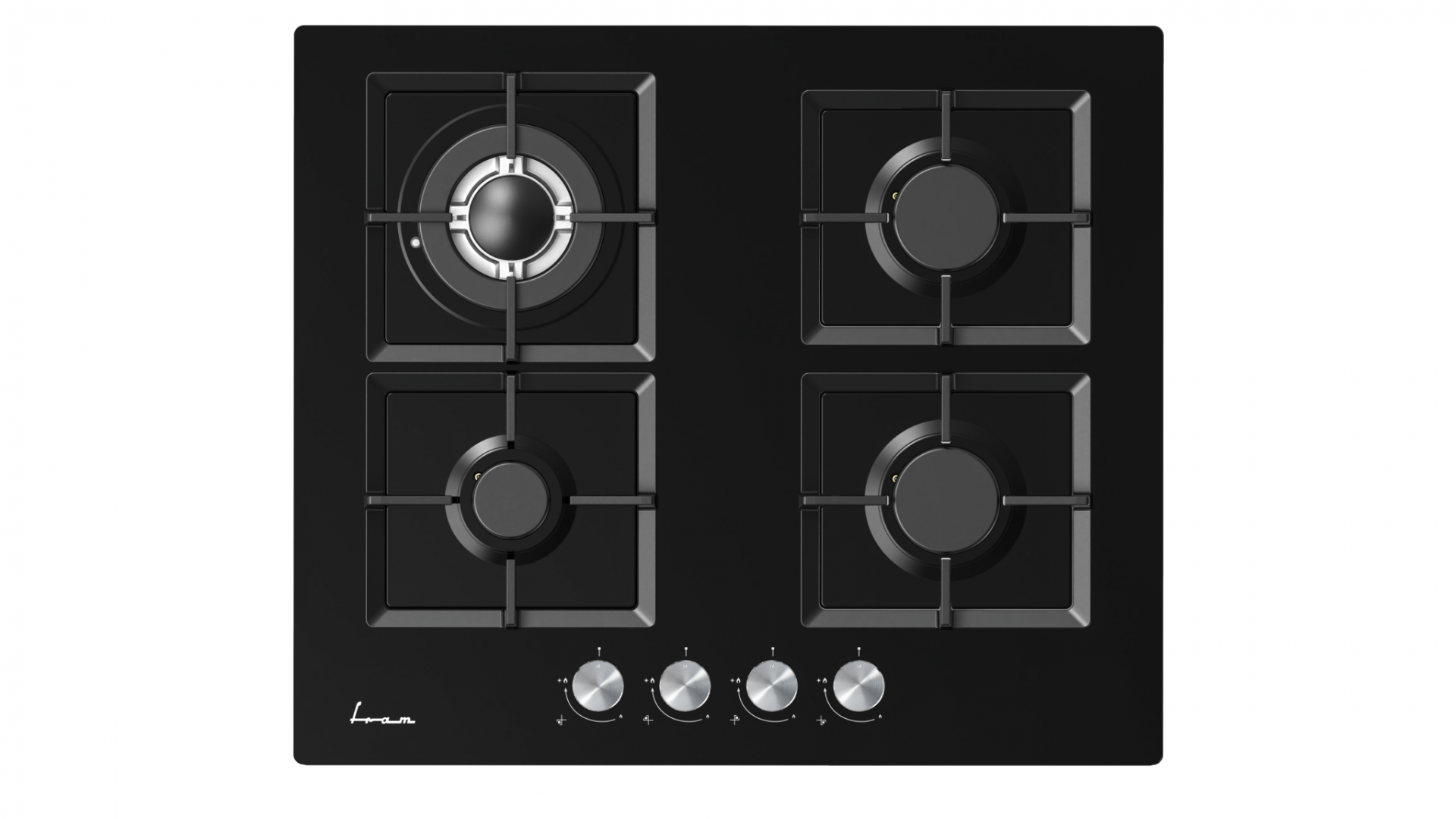PLITA INCORPORABILA FRAM FBH-M4IWF-GBK, Gaz, 4 arzatoare, Latime 60cm, Gratar fonta, Wok, Aprindere electrica, Sticla neagra