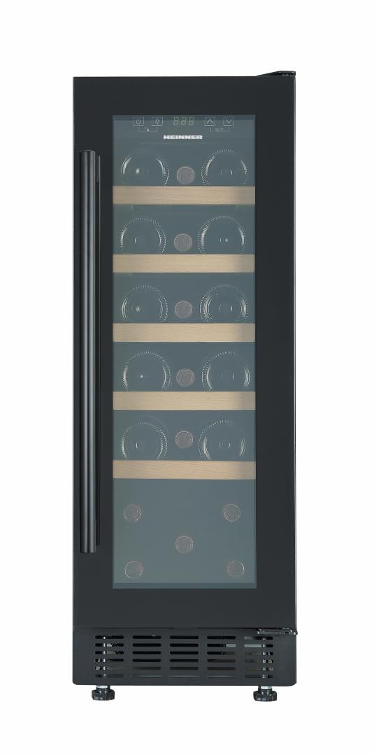 RACITOR DE VINURI INCORPORABIL HEINNER HRV-ABI56DRL20, Clasa G, 56L, 20 sticle 750 ml, Display LED, Control electronic, Lumina LED, 5 rafuri lemn, Usa reversibila, H 82cm, Negru