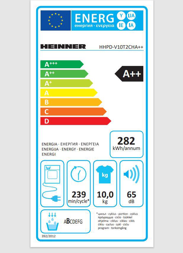 USCATOR DE RUFE CU POMPA DE CALDURA HEINNER HHPD-V10T2CHA++, Clasa A++, 10Kg, 15 programe, Display LED, Alb