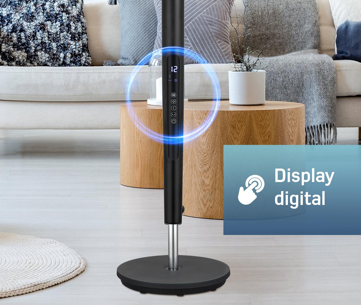 VENTILATOR CU PICIOR HEINNER HSF-MAT24DC-GY, Compartiment aromaterapie, 5 palete, Turbo, 12 trepte viteza, Motor DC, Timer, Display LED, Control tactil, Telecomanda, Gri