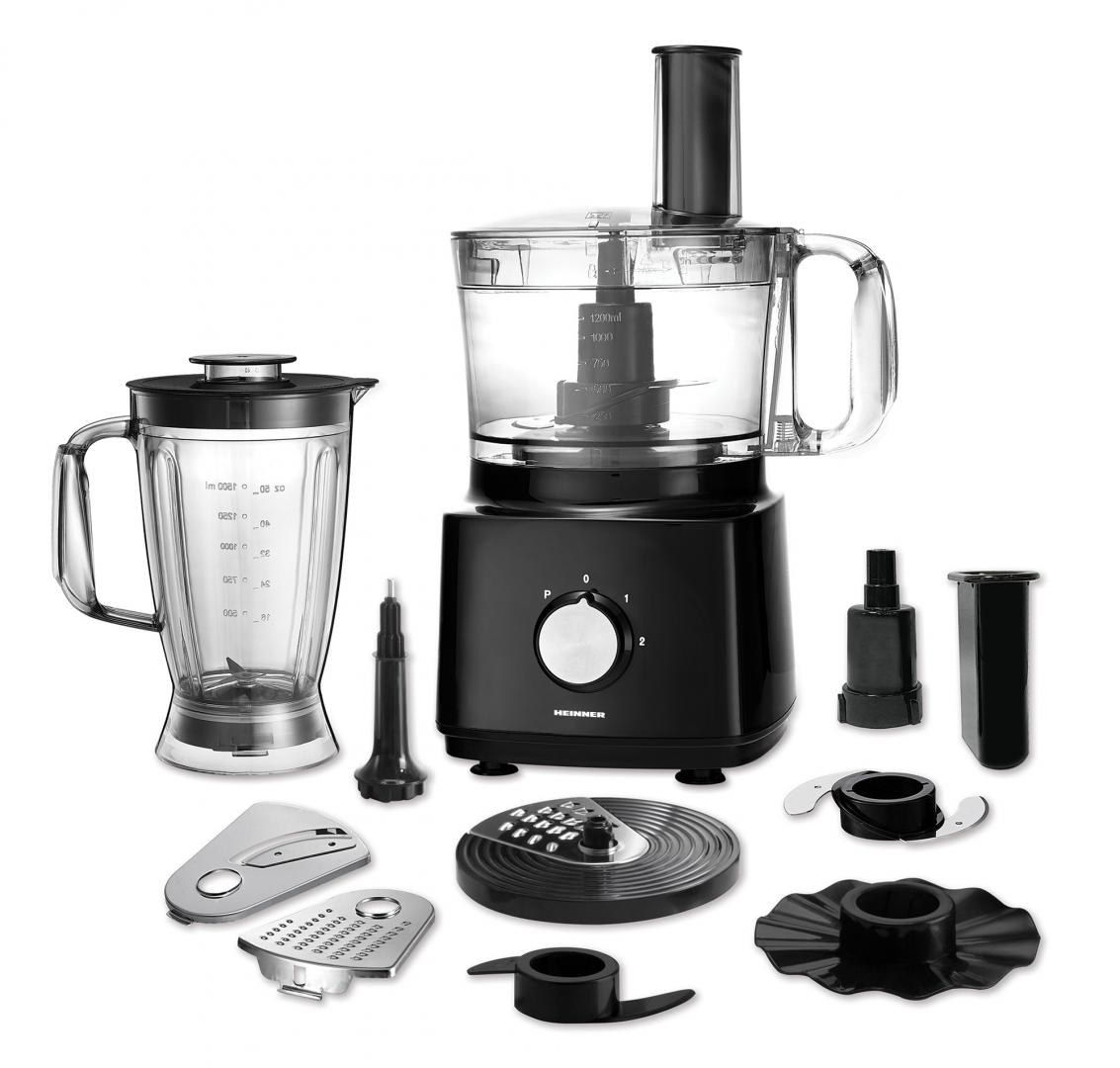 RESIGILAT – ROBOT DE BUCATARIE HEINNER HFP-750BK, Putere 750W, Bol 1.2L, Blender 1.8L, 4 discuri, Negru